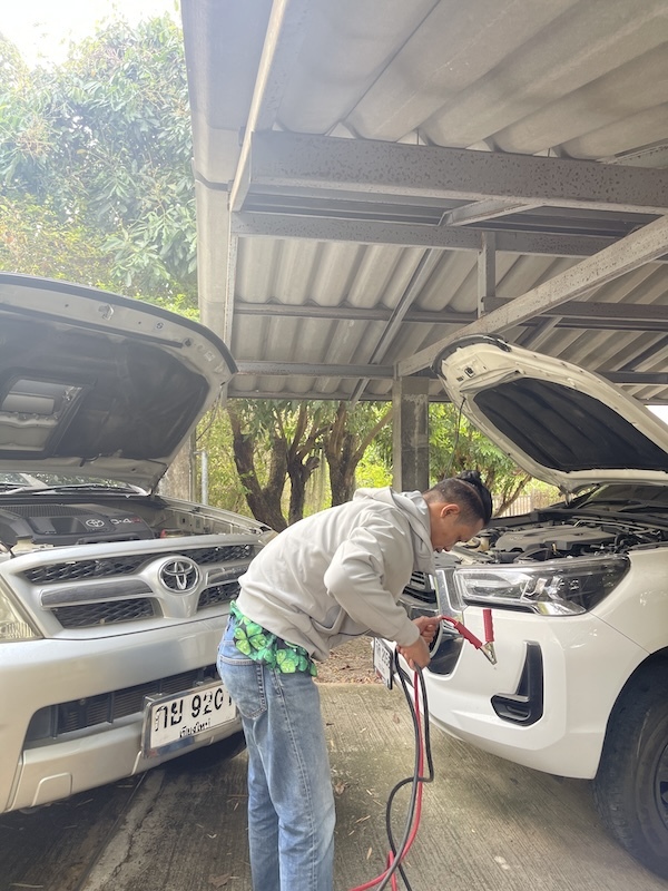 ということで、今朝ヌンが来てバッテリーチャージでなんとかエンジンはかかったのですが、トンくん曰くバッテリー交換しなくてはならないかも、、だって(大泣)。