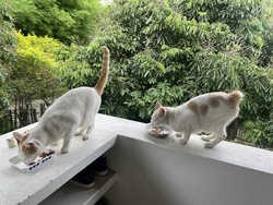 炎症を止めれば2匹とも良くなるそうで、1週間経った今、ずっちゃんは腫瘍から出る液体の量が減り、トントンもお尻の穴上の炎症が良くなってきました。