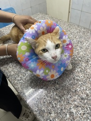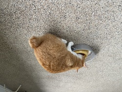 トントンはエリザベスカラーの代わりに、ドーナッツと呼ばれるものを被ってお尻を舐めないようにしています。