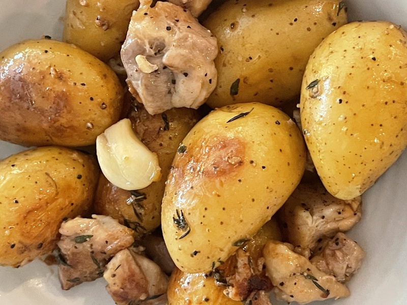 最後に、ここ最近また小さなメークインが結構市場で手に入るので(新じゃがではないけれど)ジャガイモと鶏肉が好きな私は、週一ペースで、密閉できる鍋に入れるだけの超簡単なご飯を食べています。