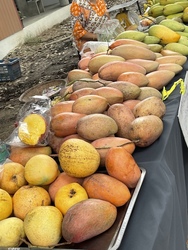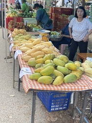 案の定、店先にマンゴがたくさん! 安い! 獲れすぎてどこも大変なようです。