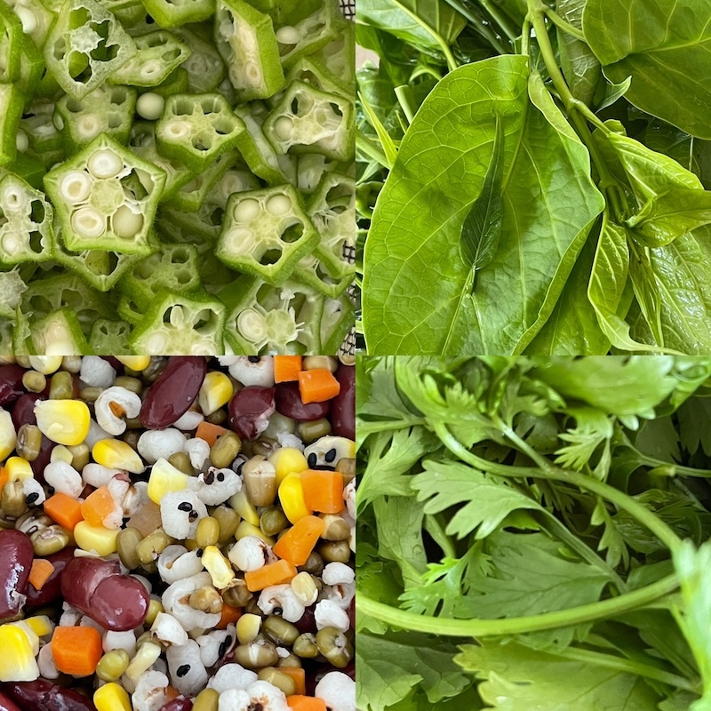 オクラは甘いし、チエンダーにインゲン、そして豆類。土曜市場はやはり新鮮。