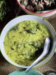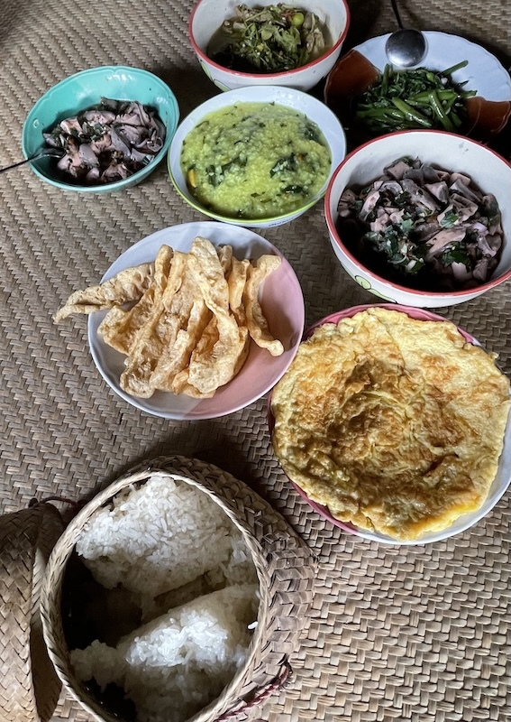 お昼ご飯は久々の山の餅米に、この時期の赤いキノコや野菜たっぷりの相変わらず優しい味の美味しいご飯。