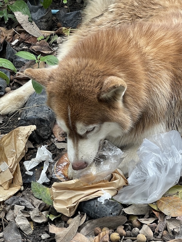一緒に行った友人が冷凍もできるからと、菓子パン、おかずパンを7−8個買って行ったら、私たちが家の2階でお昼を食べている間に、ハスキー犬君が全部食べてしまいました、、、、。