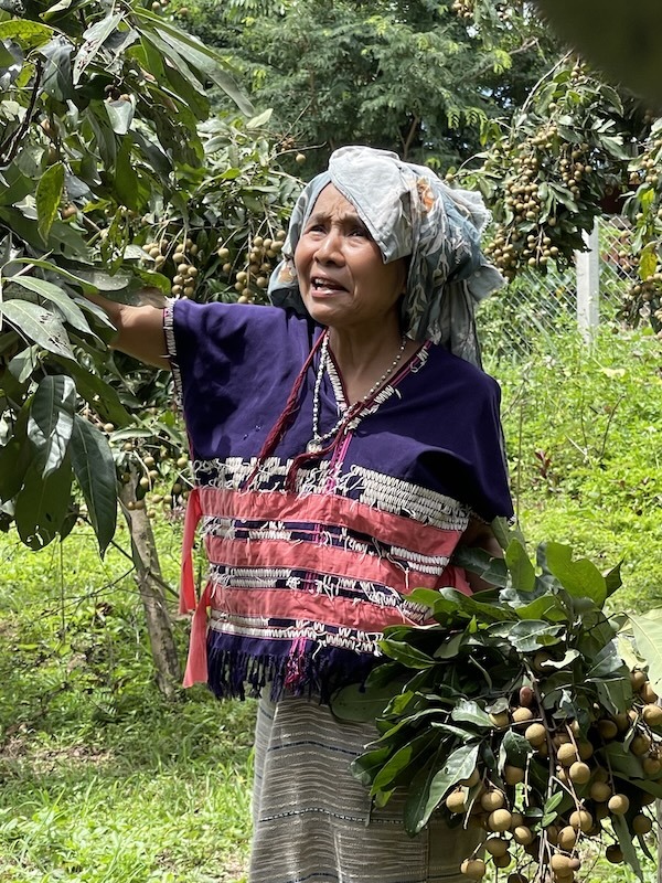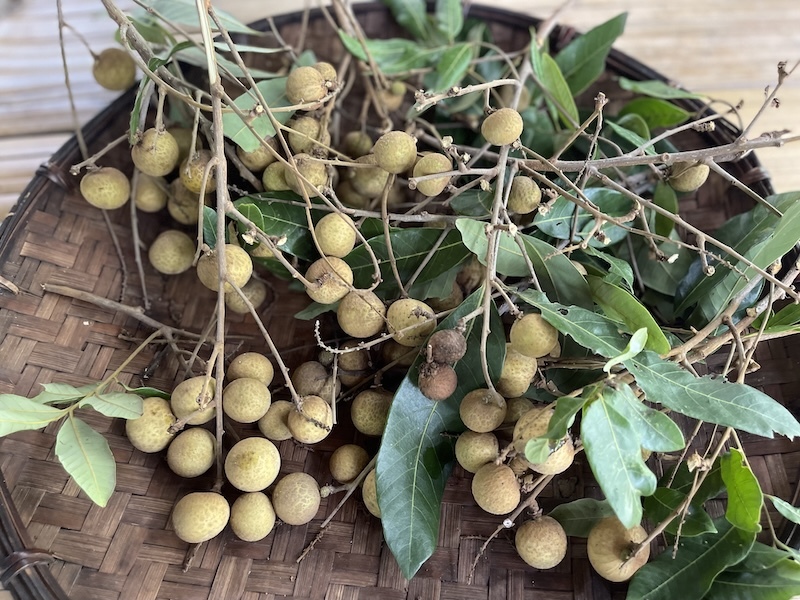 村散歩をしながら、Sさんの新居を訪ね、ご主人とも会って、最後は別の場所にあるチャンシーさんのもう一つの家でラムヤイ(龍眼)を収穫していただき、再びすごい数のマンゴーと共にお土産にいただきました。