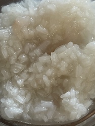 これは外食ではないのですが、バーンロムサイの敷地内もラムヤイ(竜眼)が大豊作なので、ホームのコック、ルンさんが、カオニャオラムヤイを作ってくれました。