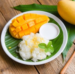 一般的に有名なのはカオニャオマムアン(蒸した餅米にココナッツミルクと砂糖を入れて混ぜて、甘いマンゴーと食べるデザート)で、これは観光客にも人気。最近はドゥリアン人気でカオニャオドゥリアンとかもあるらしいです。