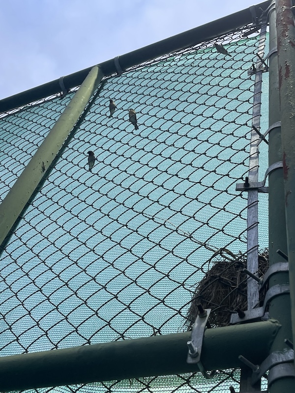 ちょうど夕方のピックルボールの時に、常設の鳥の巣から子どもたちが巣立ったところ。