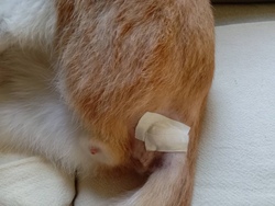 トントンの朝5時と14時のお薬担当。あとカラーをはずして、絆創膏を剥がさないように見守りながら自由にしてあげるというのが私の役目。