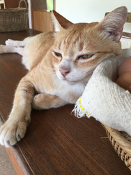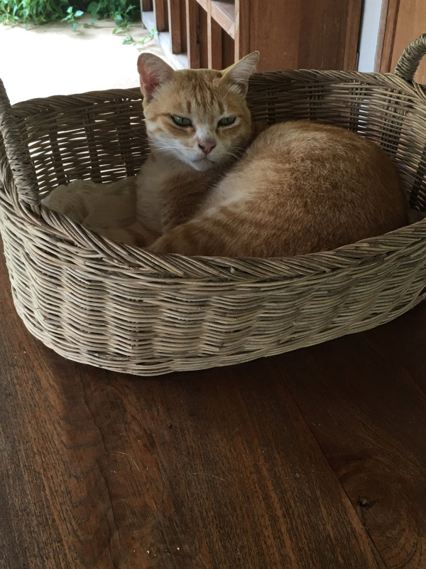 ホシハナのニワトリの卵を買いに行ったら、タラちゃん(本名タラコ、別名タイラメ)が卵の横でまた寝ていました。最近歳をとったのか本当に良く寝ています。そして卵をゴソゴソいじっていたら籠から出てきて「何か食べるものでもあるのか?!」と寄ってきました。食い意地は相変わらずあるようです。兄弟のクラゲも元気にしているので、まだまだ大丈夫だとは思いますが、ホシハナのお客様はタラちゃん目当てで来る人もいるくらい、人気者。