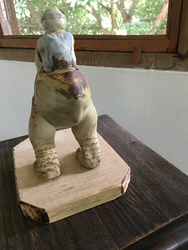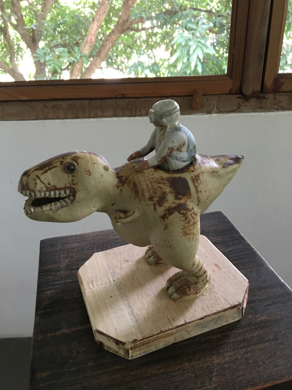 そして話しは変わりますが、我が家に恐竜がやってきました。陶芸家TAKUJIくんの作ったもの。少し早い還暦のお祝いにいただいちゃいました。いろんな角度にして楽しんでます。