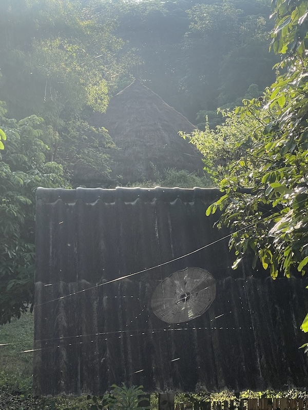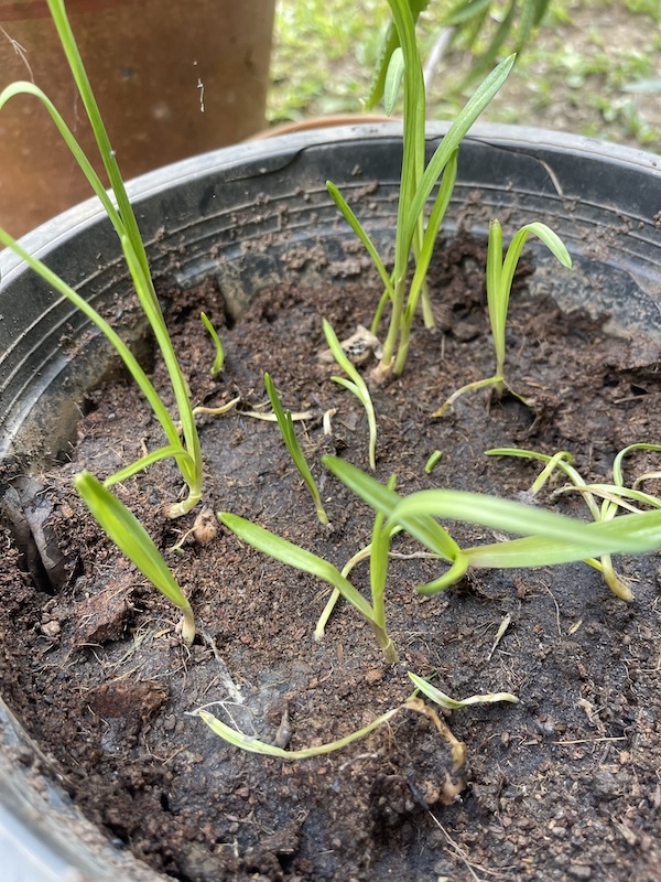 ヤティさんの村でもらってきた原種のニンニクを植えたら、ニョキニョキと。