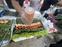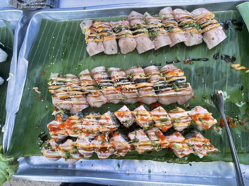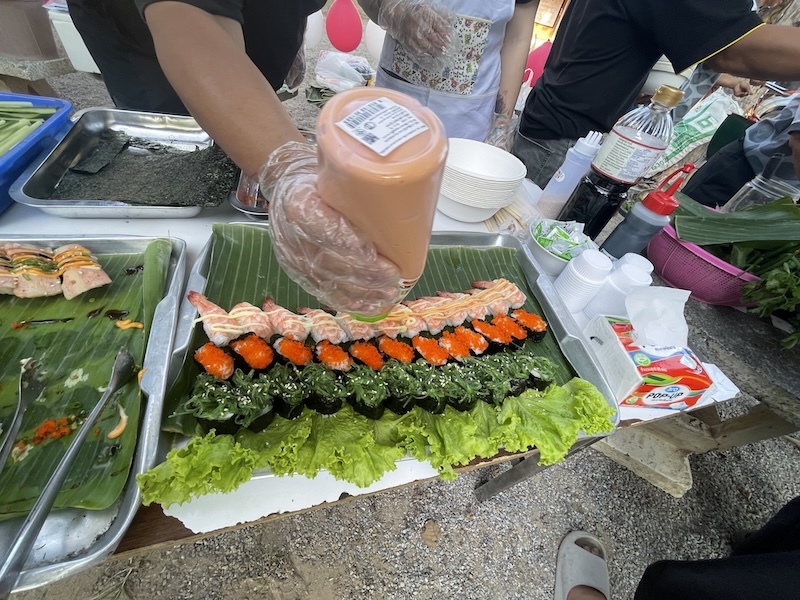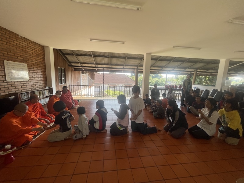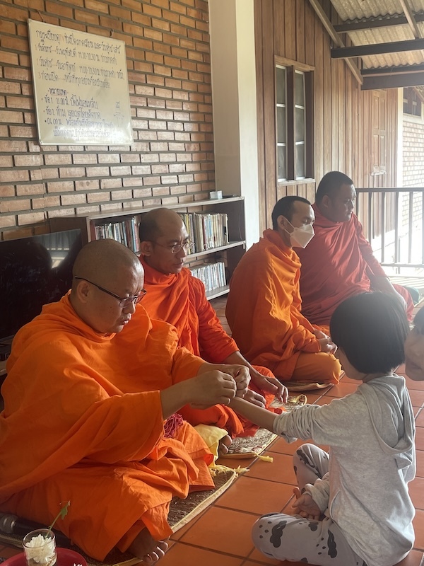 私の手首に巻いてくださる時にソムチャイ僧侶から、120歳くらいは生きそうだと言われ、とても幸先の悪いお言葉をいただきました。絶対いやだ!