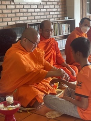 さて昨日元旦の朝9時半頃から、オムゴーイでお馴染みのソムチャイ僧侶のお寺の方々による新年の儀式がありました。