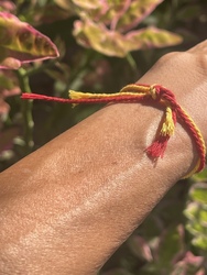 長いお経の後、最後には出席者全員がソムチャイ僧侶から男性は右手首、女性は左手首にその糸を巻いてもらうのです。