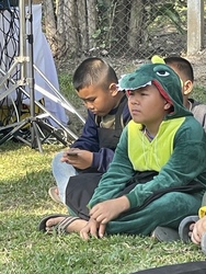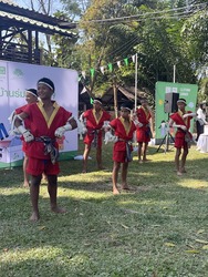 ナムプレー村の学校から子どもたち100名という大掛かりなもの。