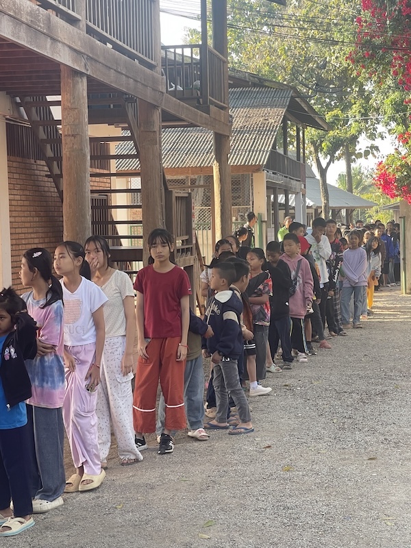 この村には、ミャンマーから来たタイヤイ族が多く暮らしていて、かなり貧困家庭が多いのです。なので、この日の美味しいランチや学生たちとの商品付きゲームや、ユニクロのセカンドハンドの衣類を自分で3着選んだりなどなど、とても楽しそうでした。