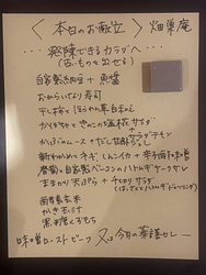 あとは写真と畑巣庵からのお食事の説明とメニューをご覧ください。