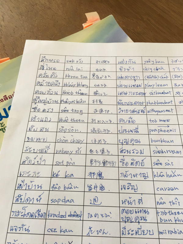 プーだし、働かない私が、タイ語習っていて何か意味があるのかしらん・・と自問自答することもありますが、あまりにも今まで知らなかった単語や言い回しが山のようにあり、それを今後実際使えるかということは別として、驚きの連続です。よく今までこんなに少ない単語と間違った文法でタイで10年以上も働いて来たと、あらためて一緒に働いてくれていたタイ人やホームの子どもたちに感謝感謝です。みんなすごい想像力と理解力!!!