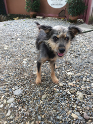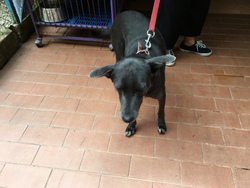 下記の犬は誰かに飼われていたらしく、兄弟犬1匹と自分の産んだ子ども2匹と一緒にゲージに入れられて道に捨てられていたところを保護されたとのこと。子どもと兄弟は貰い手があったのですが、彼女は体調がまだ悪く、最初会った時はふらふらしていましたが、この間2回目に会った時はかなり元気になっていました。