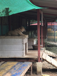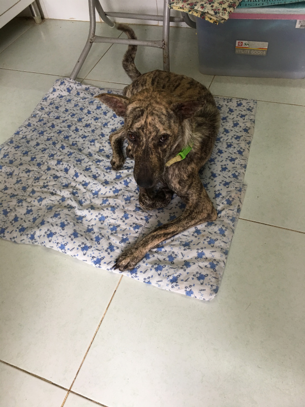 彼女は外国人の家で飼われていましたが、その人がタイを去る際、そのまま置いていったのだそうです。2週間置き去りにされていましたが近所のタイ人がご飯をあげたりしながらケアした後、センターに引き取られて来ました。