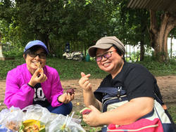 今日は一人だから朝ご飯は買って家で食べようといざ歩き始めたら、ウェウとアニーちゃんが遅れて到着。ご飯を食べよう!!というので、お腹のすいていた私は、即引き返し一緒にガッツリ朝ご飯を食べました。アニーちゃんはウェウの友だちで食べるのが大好き!そして歩くのは遅い(笑)