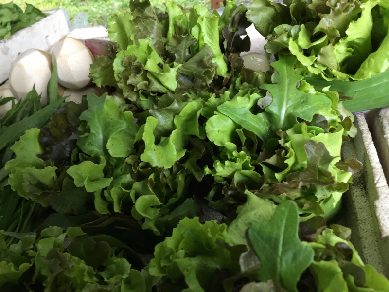 土曜日はいつもの朝市。今回は久々の一人だから、いつもよりさらに速歩にして、散歩開始。7時くらいはまだ涼しくて人も少ないし、犬とニワトリがいるだけだから、とても気持よい! ここでもプー太郎万歳!と小さく拍手。