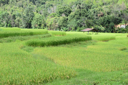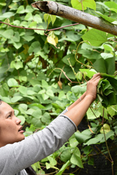 ということで、一昨日の金曜日、友人たちにメーワンの奥にあるフアイイーカーン村へ連れて行ってもらいました。今年2回目のこの村はパガーヨー(カレン族)の村で、そこに住むヤティーさんの家で草木染めや腰織りをやりに行くというのが友人たちの目的。