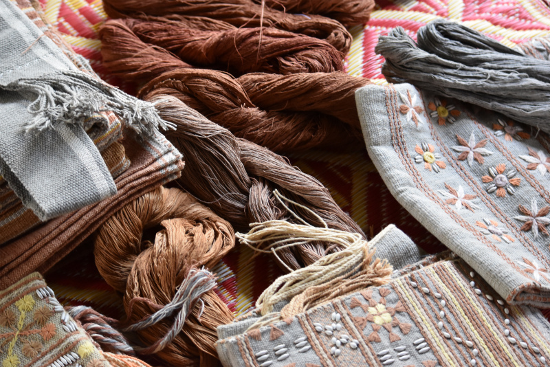今回のヒットはバナナの幹の皮で染めたグレーの糸。とても素敵な色。これで作ったバッグ買っちゃいました。ここの染めはなんだかとても雰囲気がやわらかくて、肩の力が抜けていて一番好きかも。