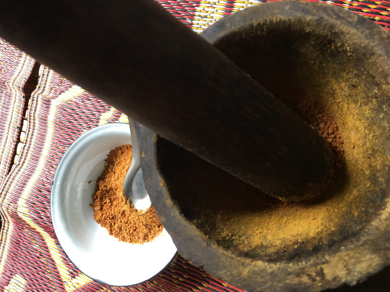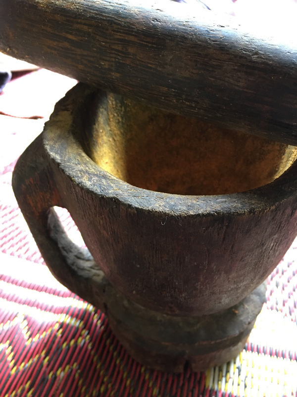 いつもヤティーさんから彼女の作ったトゥアナーオを買っている私。なので、ディップの作り方を教えてくれました。もうすでに臼がすてき!