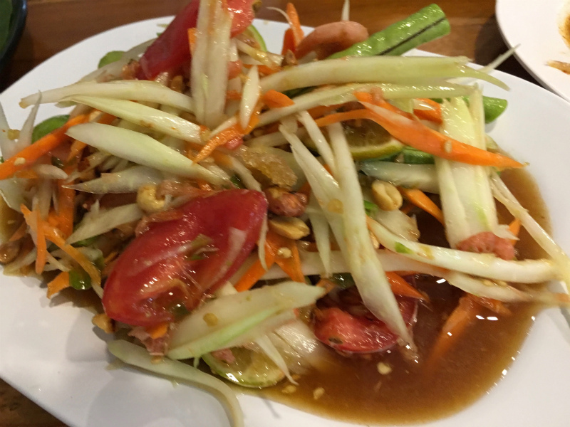 しかし・・、もう売り切れ! すでにビールも頼んでしまったので、豚肉とソムタムなどを注文。明るいうちからまったり飲むのはプー冥利につきます。