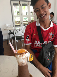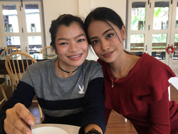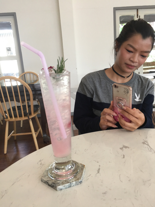 食べに来て!と言われたので、お休みのダーウとヌンと一緒に彼女の働くカフェへ。