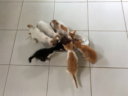そして話はまったく変わりますが、先日お隣さんたちのチビチビ6匹をワクチンをうちにまとめて病院へ連れて行ったのですが、最初350グラムだったのが、もう2キロを超えていました。